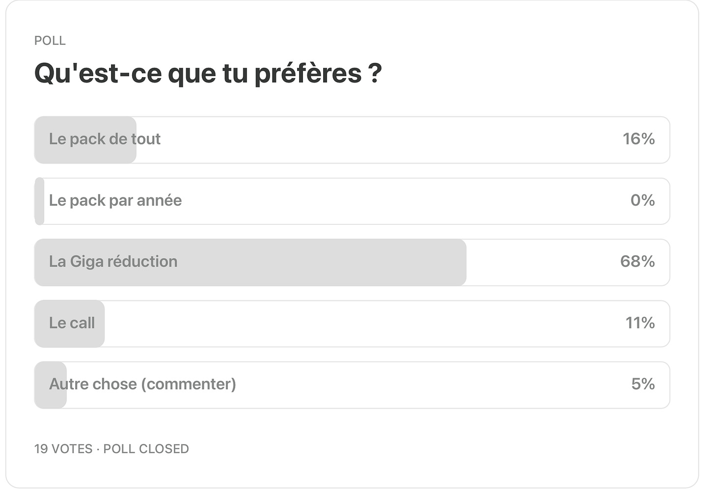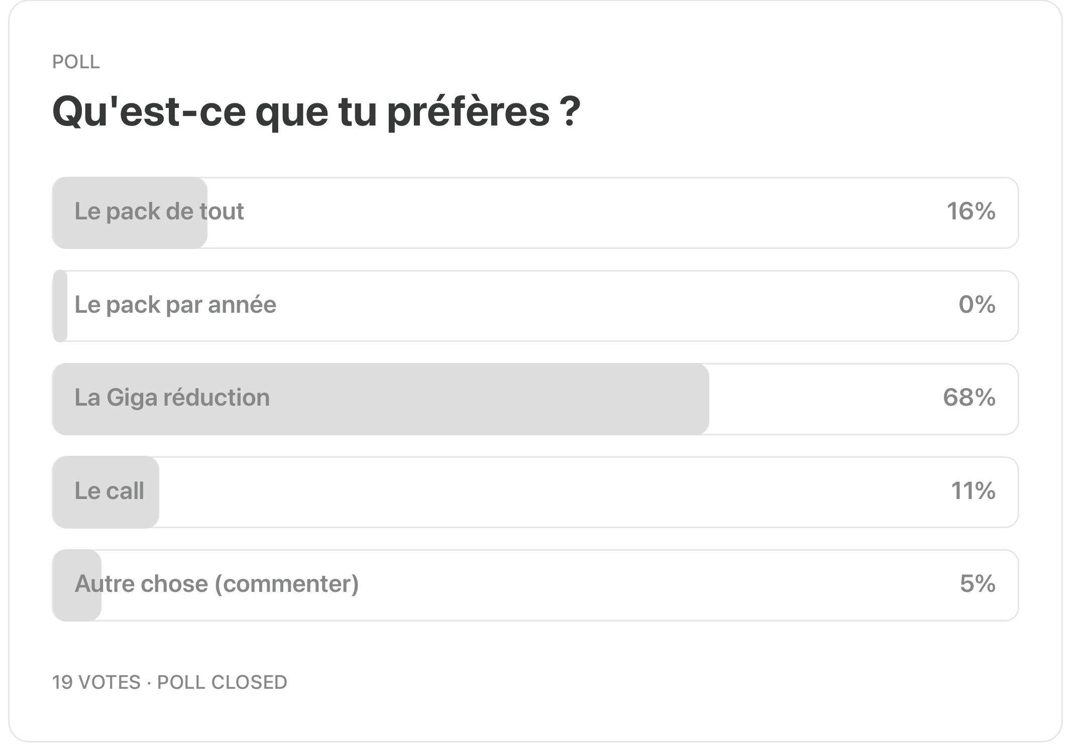La semaine dernière je vous ai demandé ce que vous préfèreriez comme cadeau pour vous remercier d’être premium.