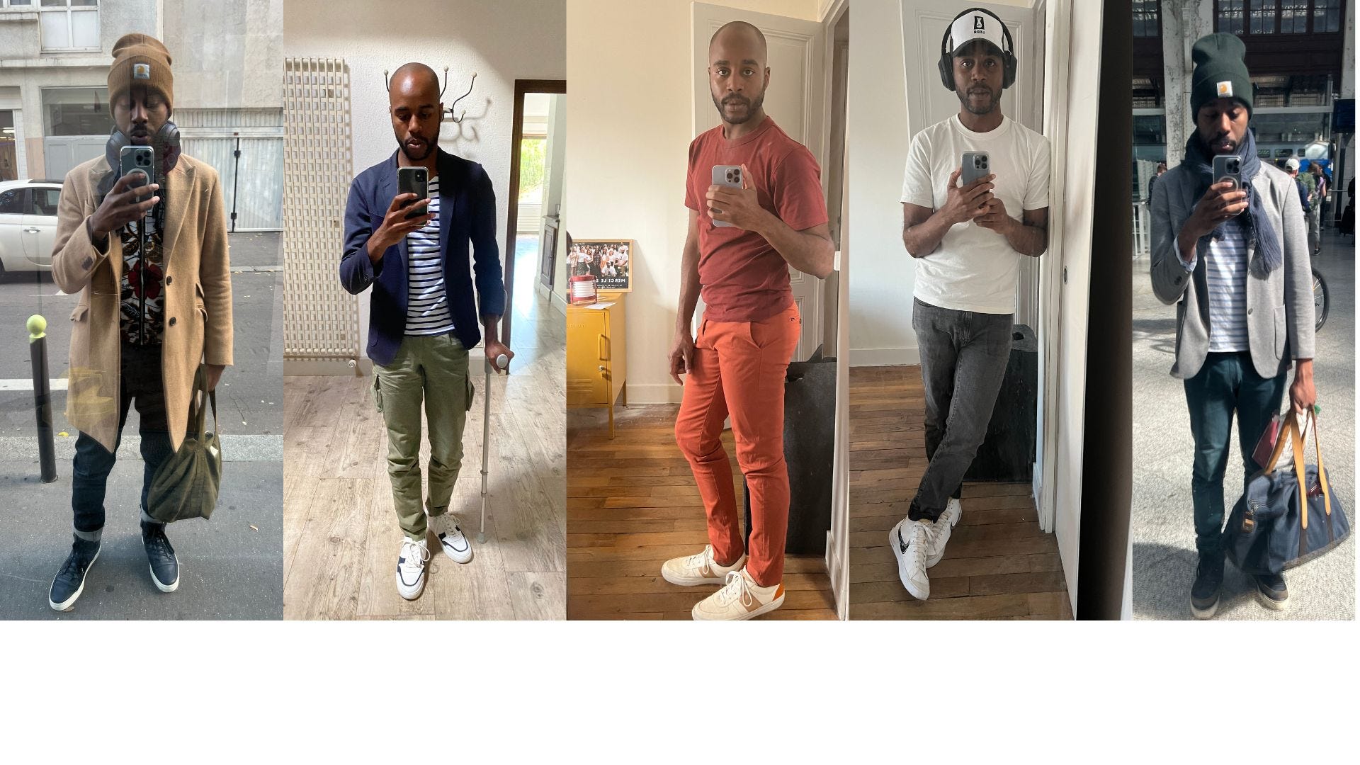 Y’a encore plein de trucs que je veux améliorer mais je sais où je vais. Je commence à avoir un style qui s’émancipe de celui que j’ai appris dans Bonne Gueule. Ce qu’on peut voir dans la photo de gauche où j’ai une pièce avec des motifs floraux, ce que je n’aurais jamais fait avant. Ou même dans celle du milieu où je n’ai aucune couleur basique.