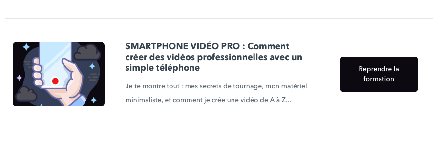 J’ai donc décidé de tourner avec les moyens du bord. Non sans avoir acheté avant une formation pour apprendre à avoir un rendu professionnel avec :