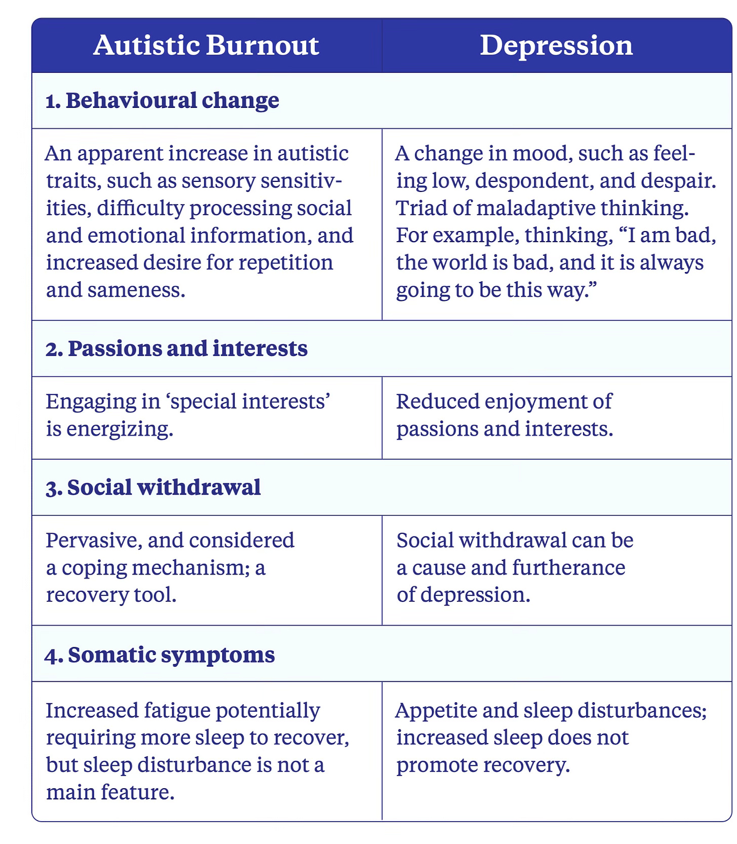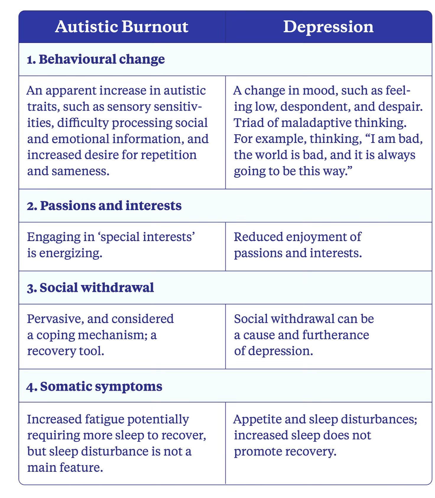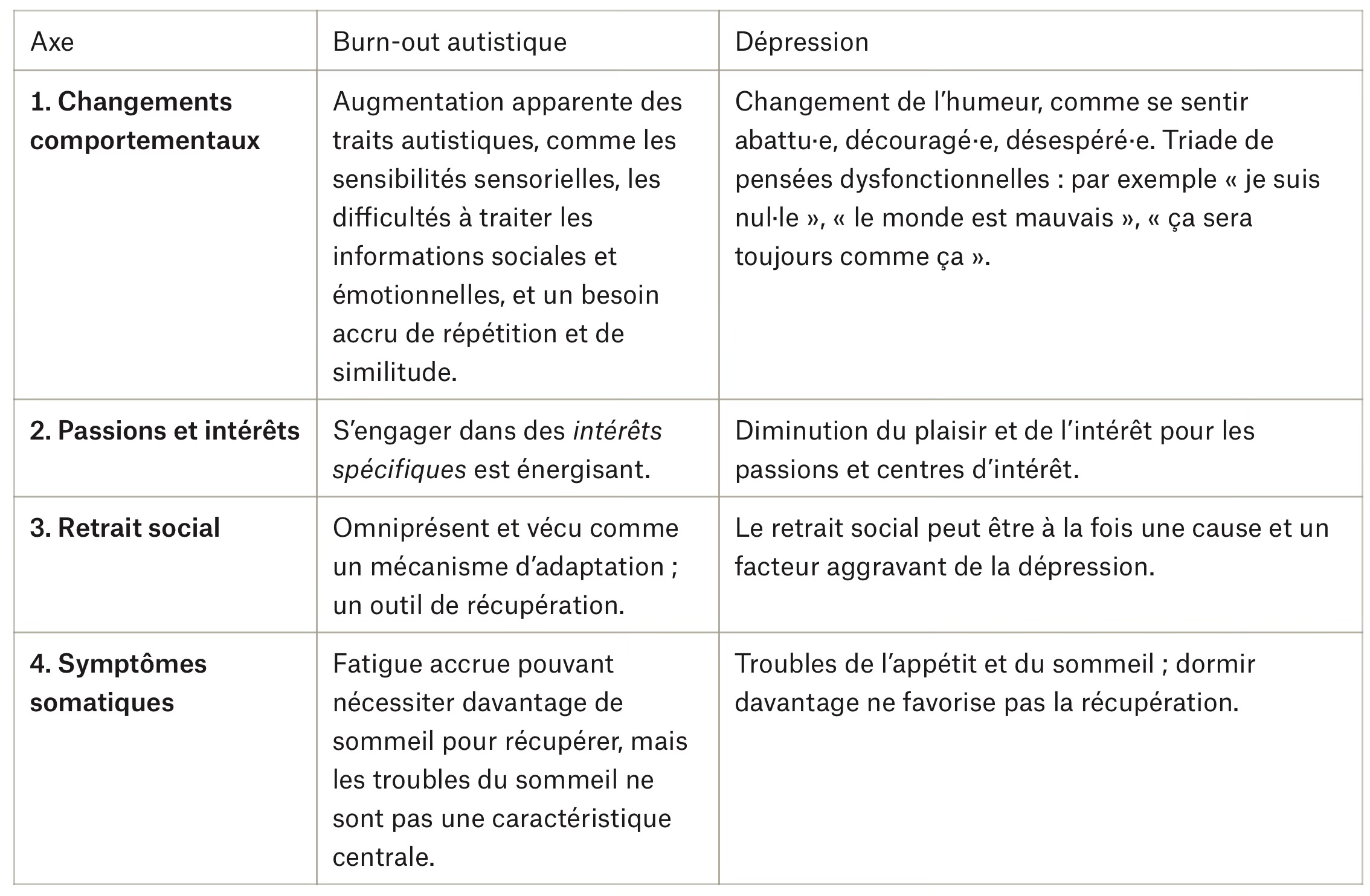 (cette confusion peut être vécue autant par la personne que par les cliniciens non familiers avec le burnout autistique).