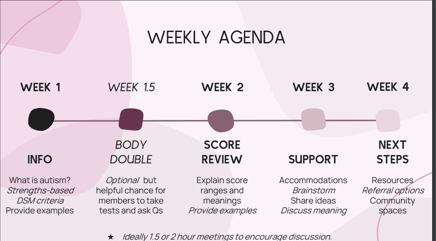 Jeudi dernier j’ai organisé un atelier d’auto-identification autistique. J’ai eu l’idée après avoir suivi cette formation :