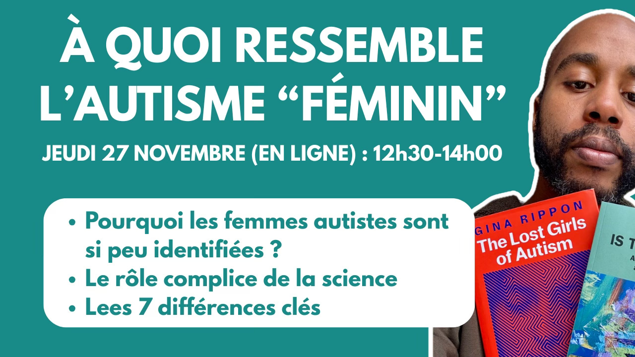 Jeudi prochain je te propose une conférence qui résume les découvertes du livre The lost Girls of Autism de l’incroyable Gina Rippon qui a fait un travail phénoménal pour vulgariser les découvertes scientifiques les plus récentes sur le sujet.