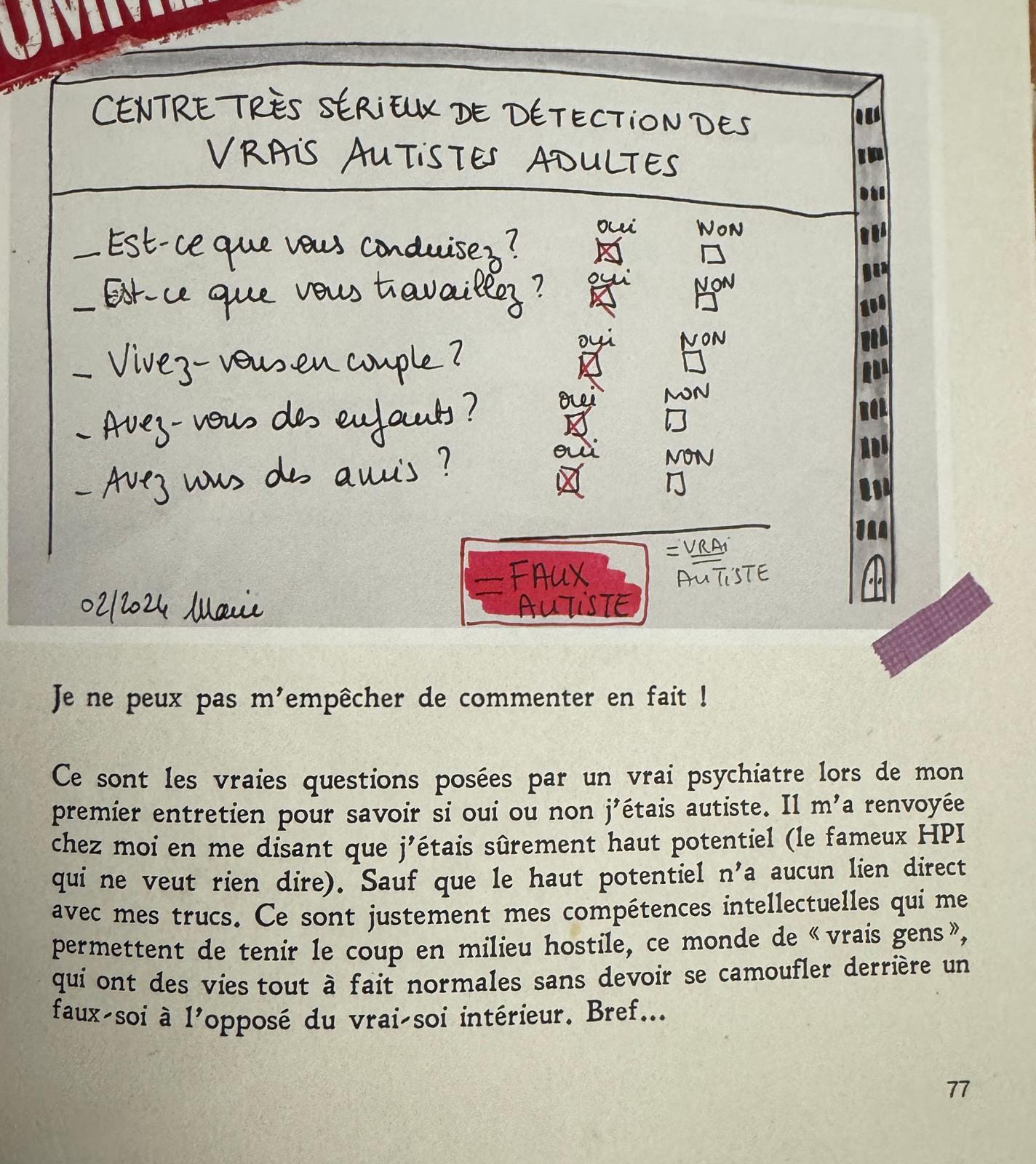 Les gens sont souvent surpris quand je leur dis que je ne lis quasiment rien sur l’autisme en français. Parce que le niveau est vraiment consternant. À part Julie Dachez y’a rien à sauver. Je pense que les gens ne se rendent pas compte à quel point ils sont désinformés s’ils lisent des livres français. En tout cas au moment où j’écris ces lignes.