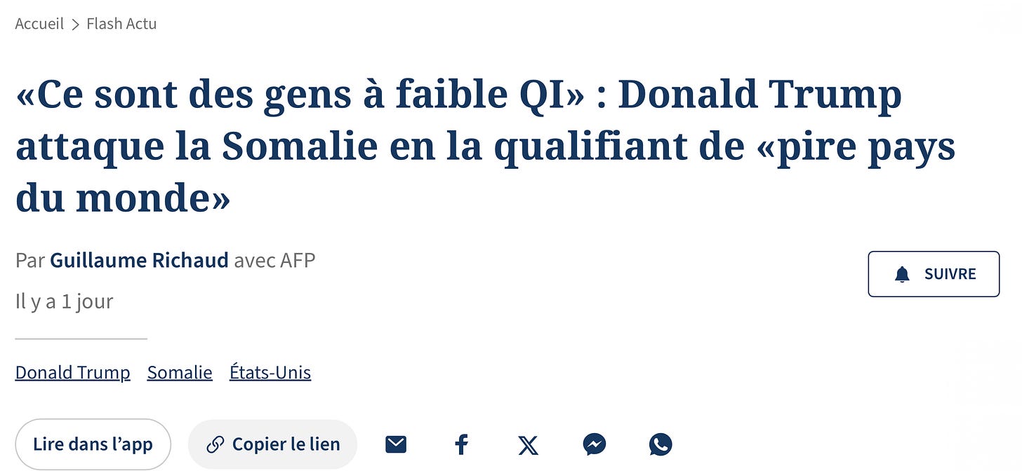 Pas plus tard que cette semaine, Trump a déclaré que les somaliens avaient un faible QI :