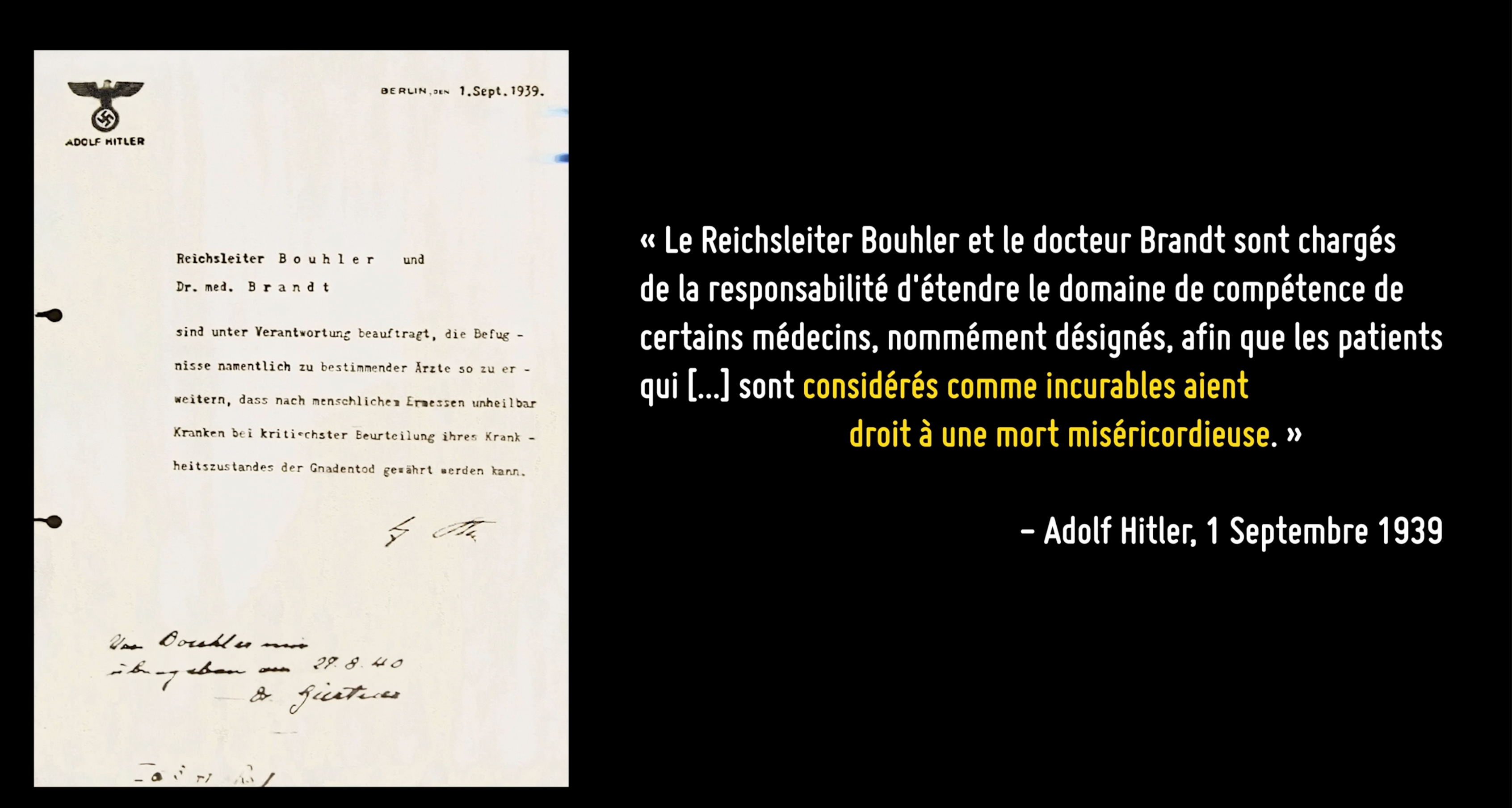 Vous avez bien entendu : avant la guerre, avant la solution finale, les nazis avaient déjà commencé à vouloir se débarrasser des handicapés mentaux.