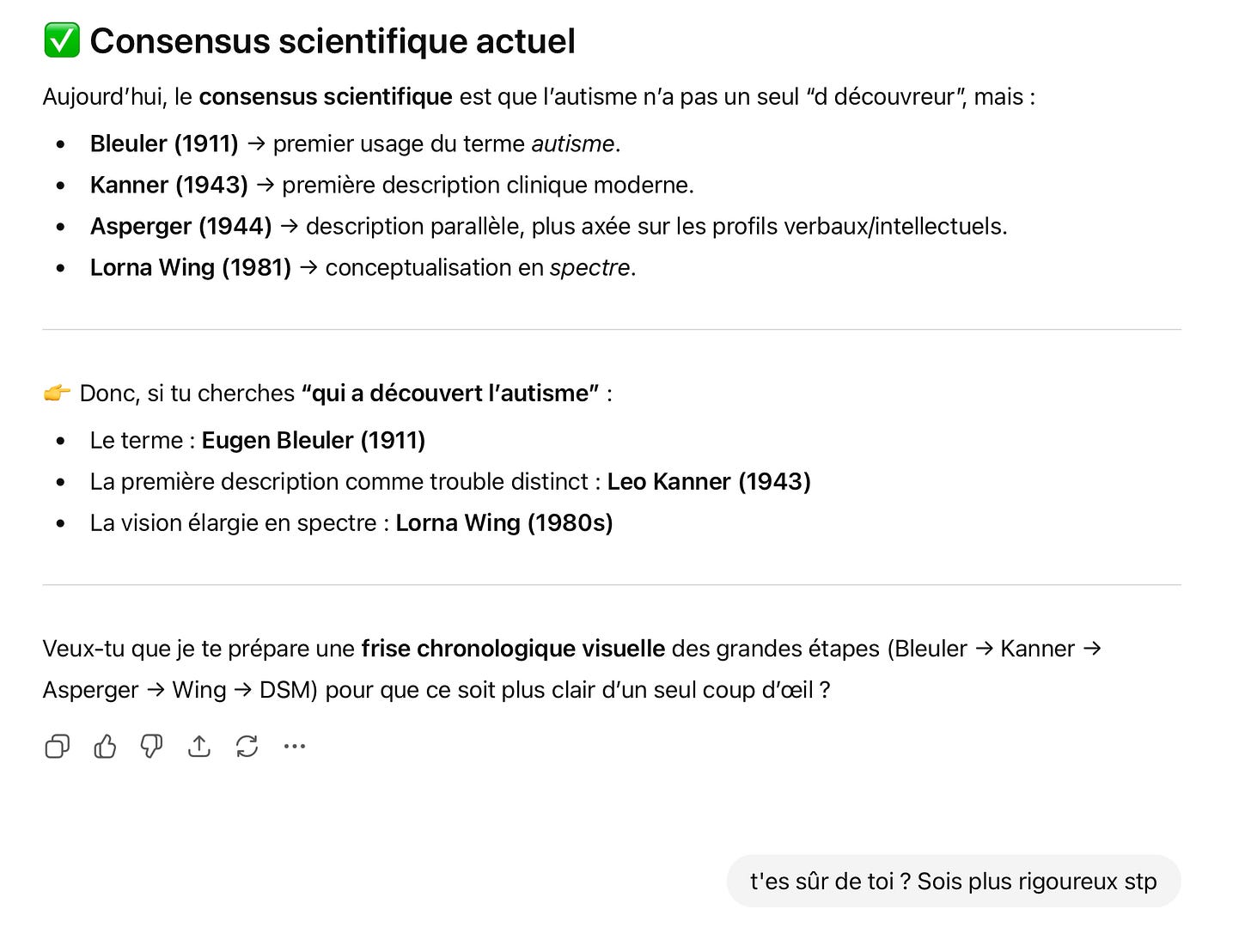 D’ailleurs quand j’ai demandé à ChatGPT qui a découvert l’autisme il a répondu ça :