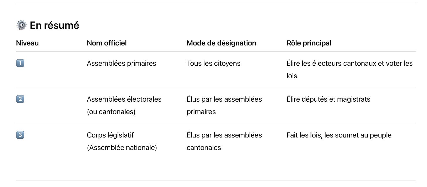 Y’a les assemblées dites cantonales qui sont composées de gens élus par les assemblées primaires d’une même zone.