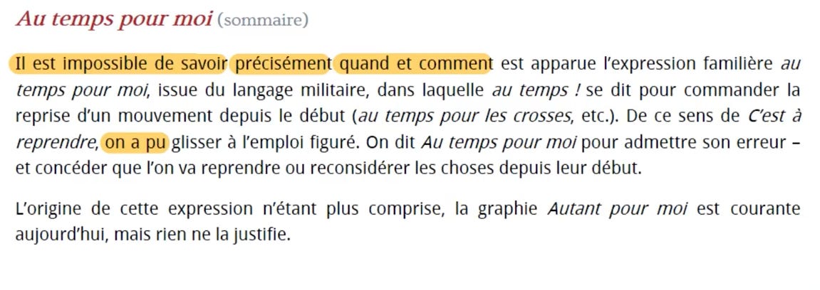 “Tu t’es trompé, on doit écrire ‘au temps pour moi’ et non pas ‘autant pour moi’”