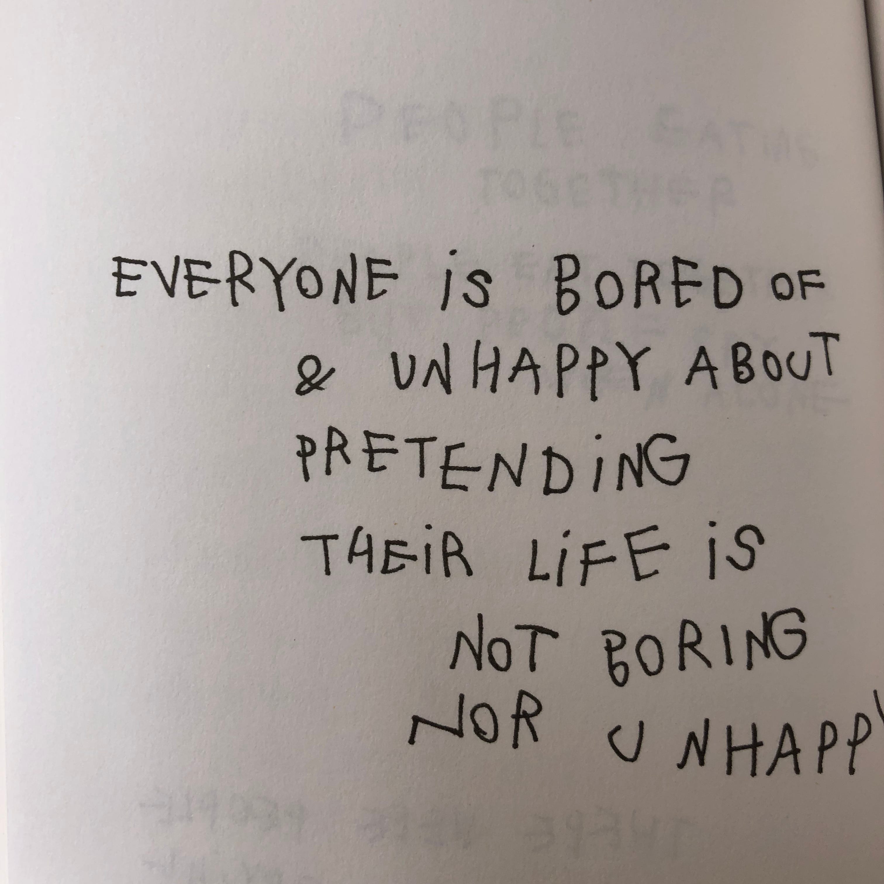 “Chacun est malheureux et s’ennuie parce qu’il fait semblant que sa vie n’est ni malheureuse, ni ennuyante”