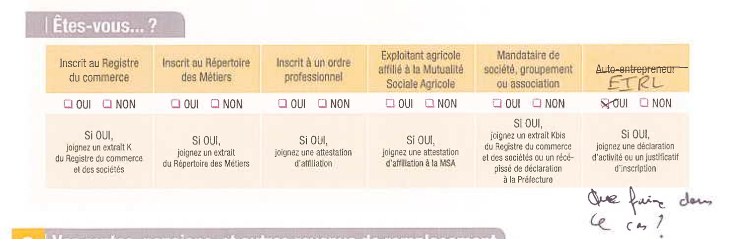 SAUF QUE dans le formulaire qu’il fallait remplir on m’a demandé si j’avais une entreprise et si oui laquelle c’était