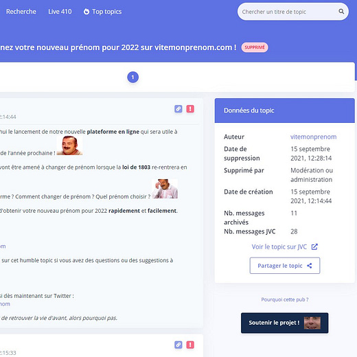 Vite mon prénom est un site qui rebondit sur la fameuse idée de Zemmour de remettre en place une loi qui interdit de donner des prénoms qui ne sont pas “français”. On y propose de rentrer son prénom et d’avoir un prénom en échange.
